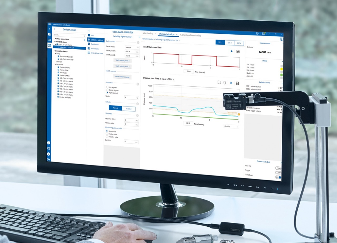 IO-Link対応センサー、アクチュエータの評価とパラメータ化に利用できます。